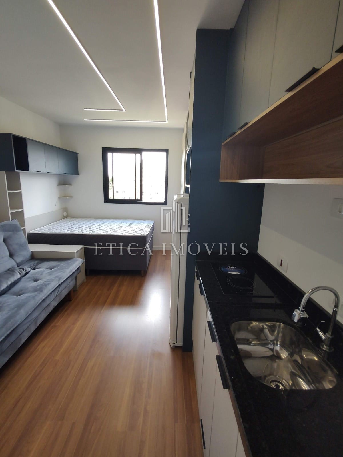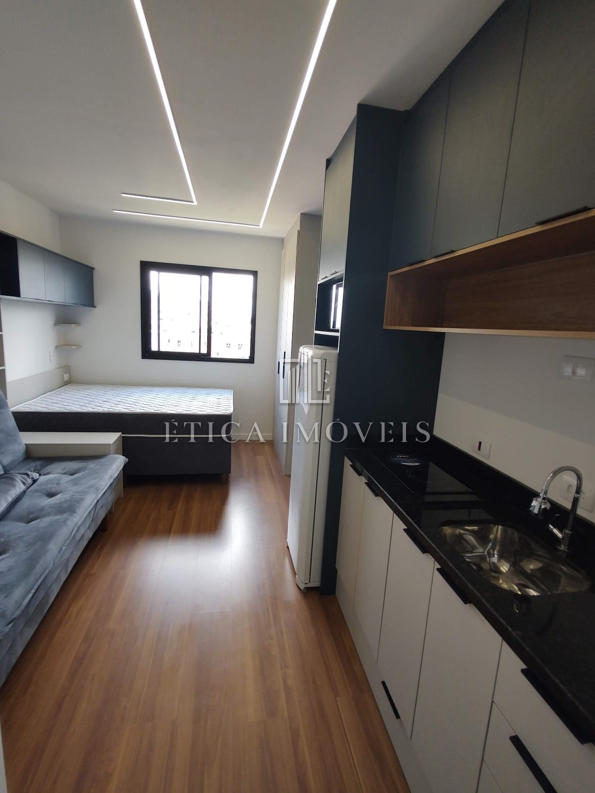 Esse studio finamente mobiliado e equipado, conta com uma área de 19 m2. no sexto andar e com excelente posição solar.
