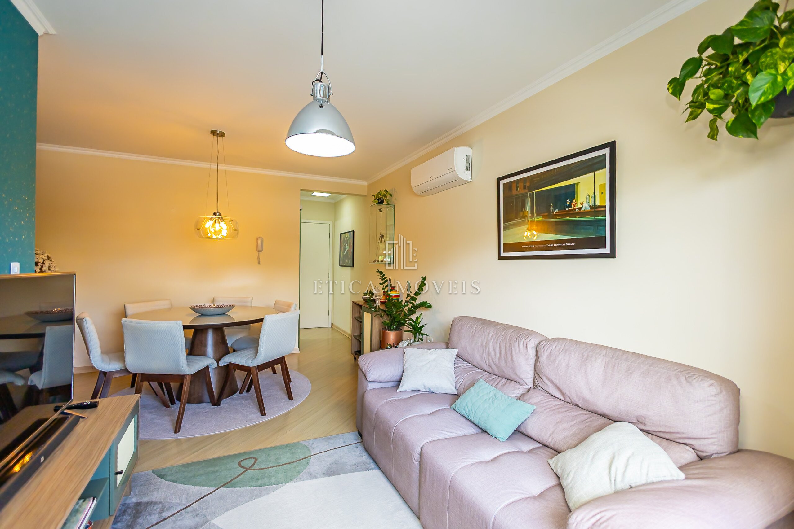 Apartamento muito bem cuidado, com 75m² privativos, ambientes bem distribuídos e excelente aproveitamento de espaço. São 3 dormitórios, sendo 1 suíte, todos com móveis planejados de ótima qualidade, além de ar-condicionado, pronto para morar.